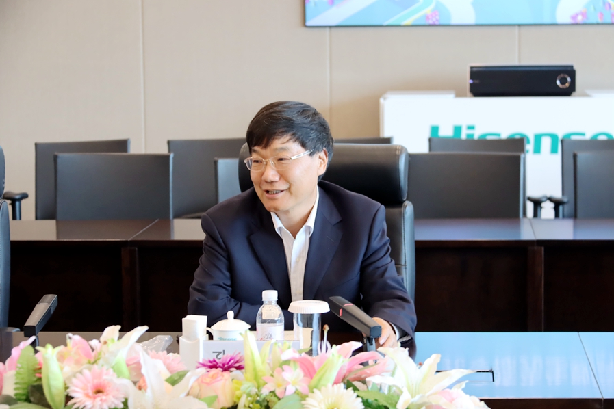 孔令栋对海信集团长期以来给予学校的大力支持表示感谢,并介绍了学校及青岛校区在校企合作、创新转化等方面的规划。他希望校区能够与企业在人才和技术支撑等方面开展更深入的合作,促进共同发展。他表示,在前期双方签署战略合作的基础上,今后将进一步加深交流,通过搭建产学研合作平台、促进科技成果转移转化,努力整合一校三地资源,为传统学科赋予新的生命。