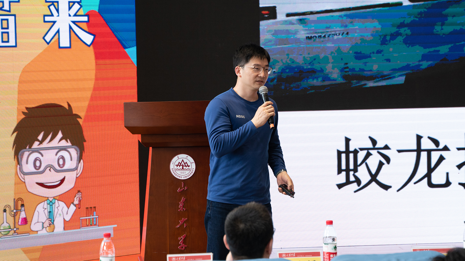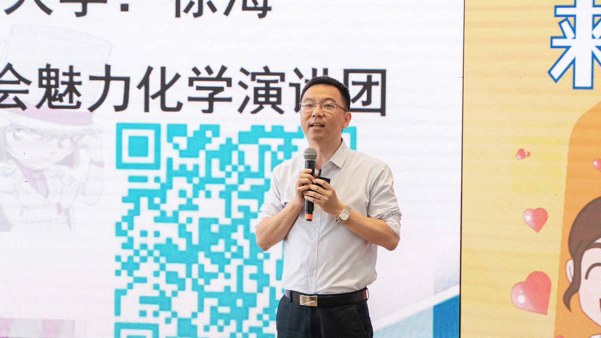 山东省科协副主席张波,山东省科协学会部部长葛玉芝,青岛市科协副主席秦云鹏,山东大学校长助理、青岛校区党工委书记邢占军等领导,及来自青岛市多个中小学的300余名学生参与了凯发k8国际娱乐官网入口的线下活动,120余万人通过线上直播探究微观世界的奥秘。