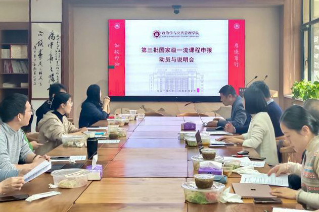 为全面提升本科人才培养质量,打造更多具有高阶性、创新性、挑战度的“金课”,推动学院一流本科课程建设再上新台阶,12月7日,政治学与公共管理学院在华岗苑南楼新时代美德书屋召开“本本优本”系列活动之第三批国家级一流课程申报动员与说明会。本次座谈会由学院副院长赵婷主持,特邀计算机学院副院长彭朝晖教授、政管学院张天舒教授主讲,学院数十名老师参会交流。