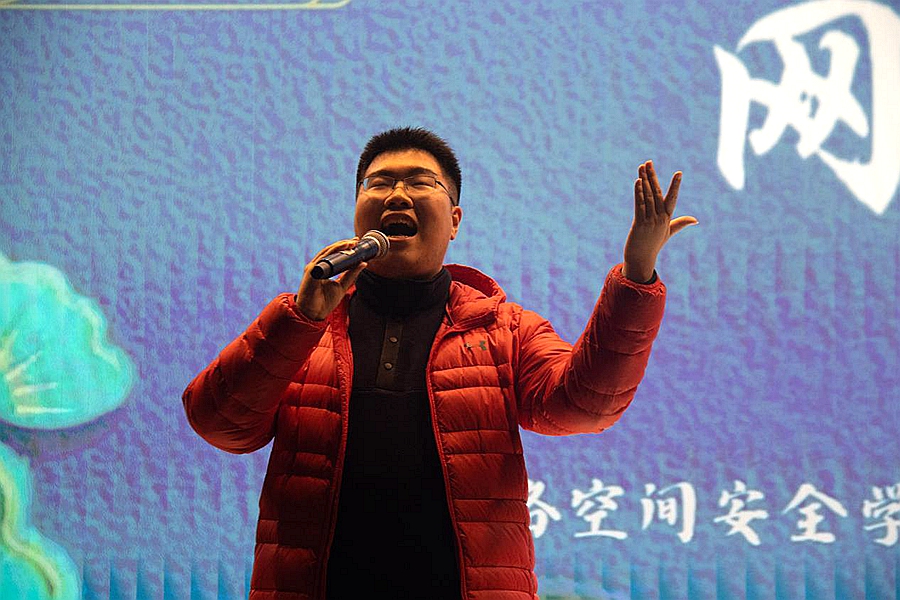 王晓东在自由展示环节以幽默的语言诉说了辅导员工作的苦与乐,向网安学子表达了诚挚的祝福与殷切期望,鼓励同学们积极进取、全面发展。